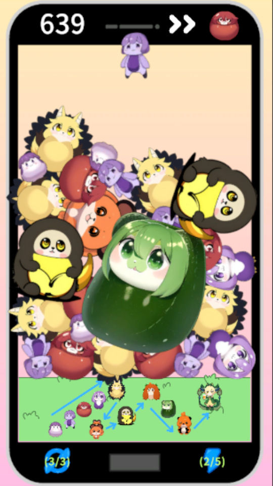 一昔前に流行ったスイカゲーム風落ち物ゲームです。